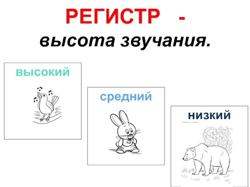 РЕГИСТР  -высота звучания.высокийсреднийнизкий