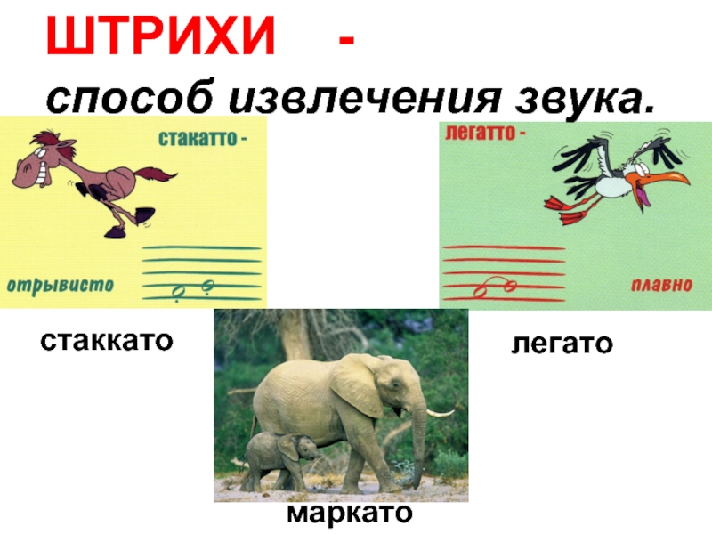 ШТРИХИ  -способ извлечения звука.маркатостаккатолегато
