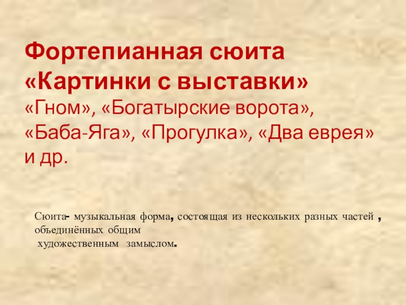 Сюита- музыкальная форма, состоящая из нескольких разных частей ,объединённых общим