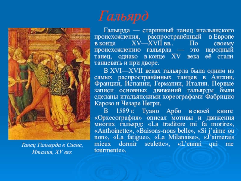 Танец Гальярда в Сиене, Италия, XV век
