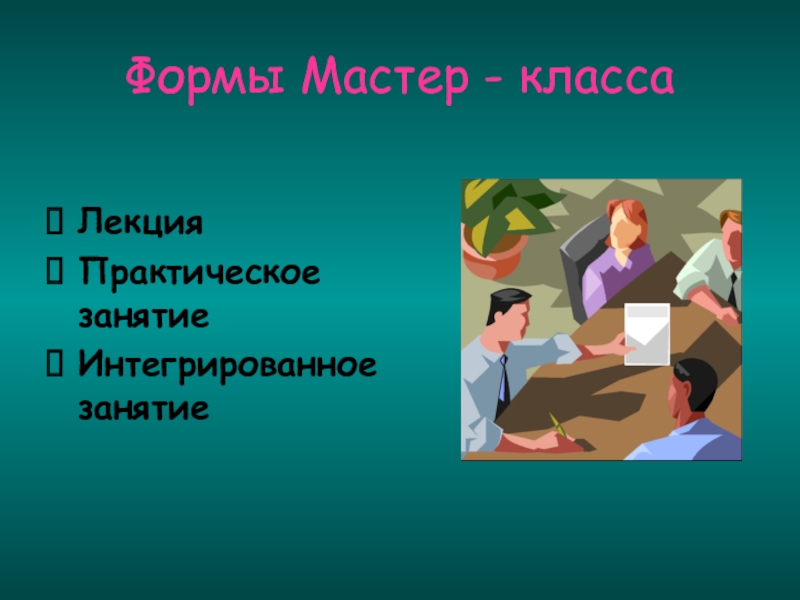 Формы Мастер - классаЛекция Практическое занятиеИнтегрированное занятие