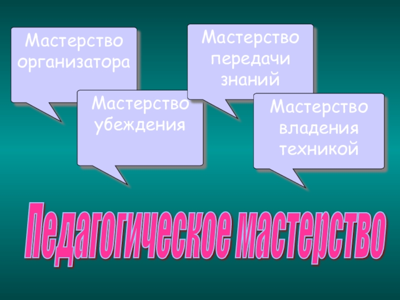 Педагогическое мастерство Мастерство организатораМастерство убежденияМастерство передачи знанийМастерство владения техникой