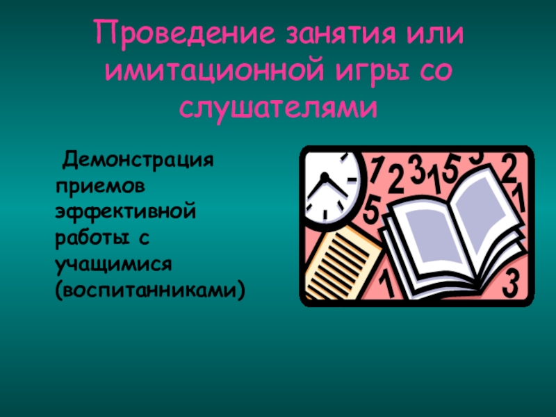 Урок (занятие) или имитационная игра со слушателями с демонстрацией приемов эффективной работы с учащимися (воспитанниками)