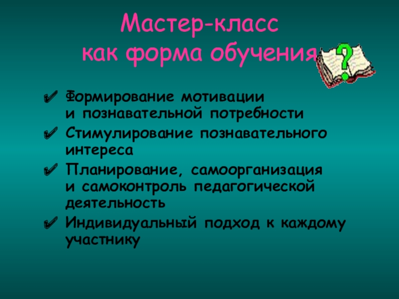 Мастер- класс – ярко выраженная форма ученичества у Мастера.