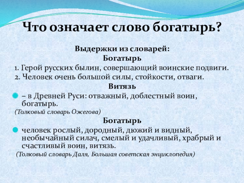 Слайд 8Что означает слово богатырь?
