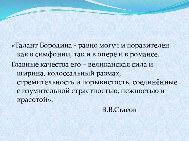 Слайд 7«Талант Бородина - равно могуч и поразителен как в симфонии, так