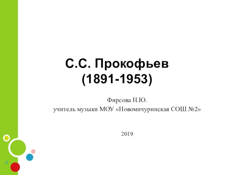 Слайд 2 ПРОКОФЬЕВ Сергей Сергеевич [11 (23) апреля, 1891, Сонцовка, ныне