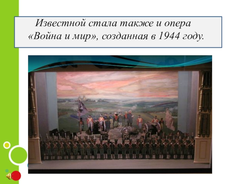 Слайд 8 Известной стала также и опера «Война и мир»,