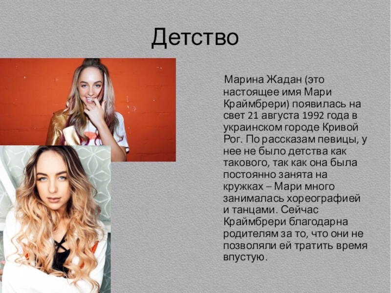 Марина Жадан (это настоящее имя Мари Краймбрери)