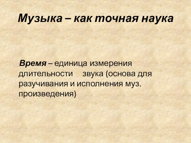 Музыка – как точная наука  Время – единица измерения длительности   звука (основа для разучивания