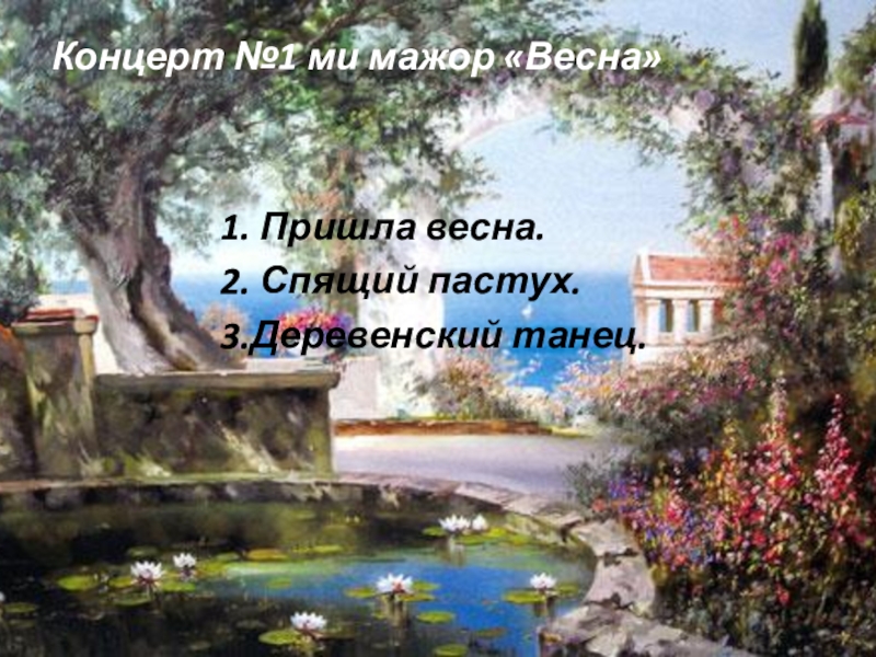Концерт №1 ми мажор «Весна»1. Пришла весна.2. Спящий пастух.3.Деревенский танец.
