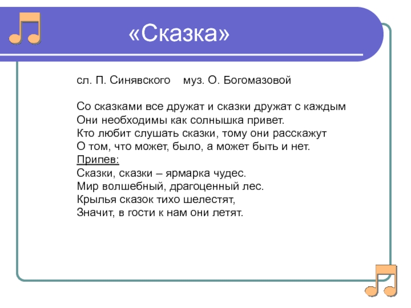 «Сказка»сл. П. Синявского  муз. О. БогомазовойСо сказками все дружат и