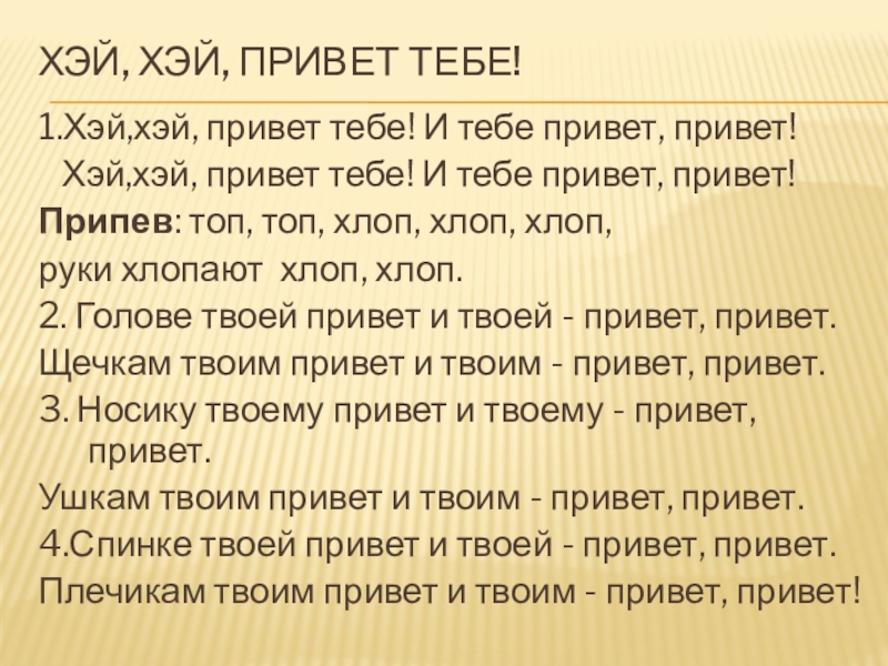 Хэй,хэй, привет тебе! И тебе привет, привет!