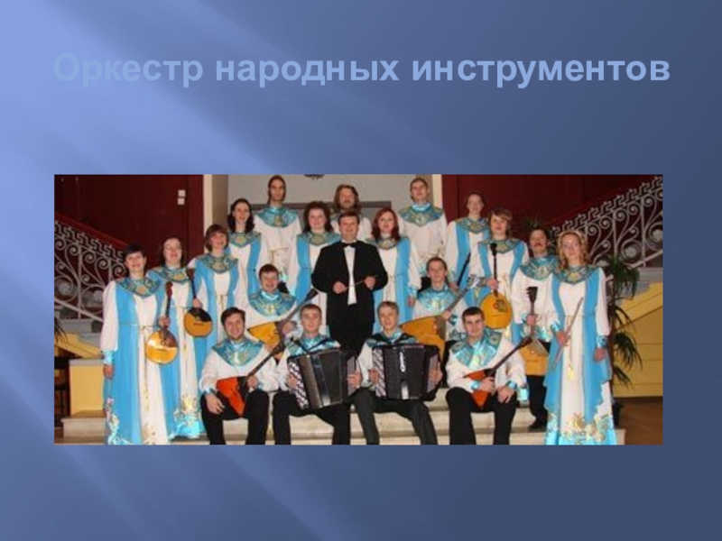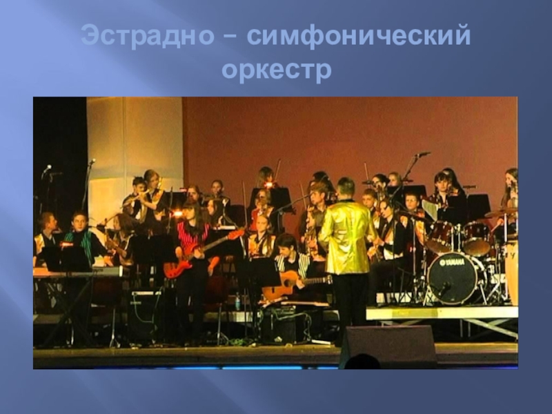 Многочисленный коллектив музыкантов, играющих на разных инструментах.