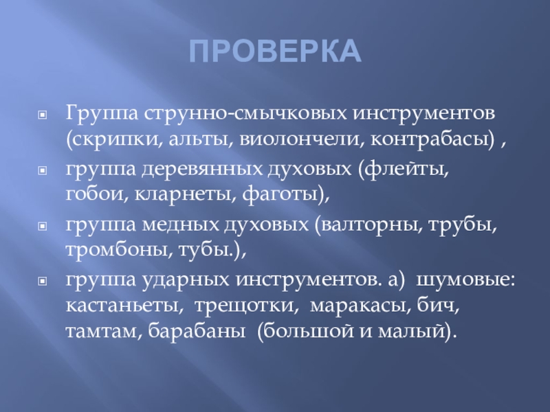 симфонического оркестра, о группах музыкальных инструментов, которые входят в симфонический оркестр .