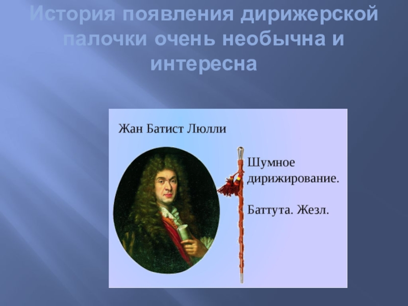 Слайд 25История появления дирижерской палочки очень необычна и интересна