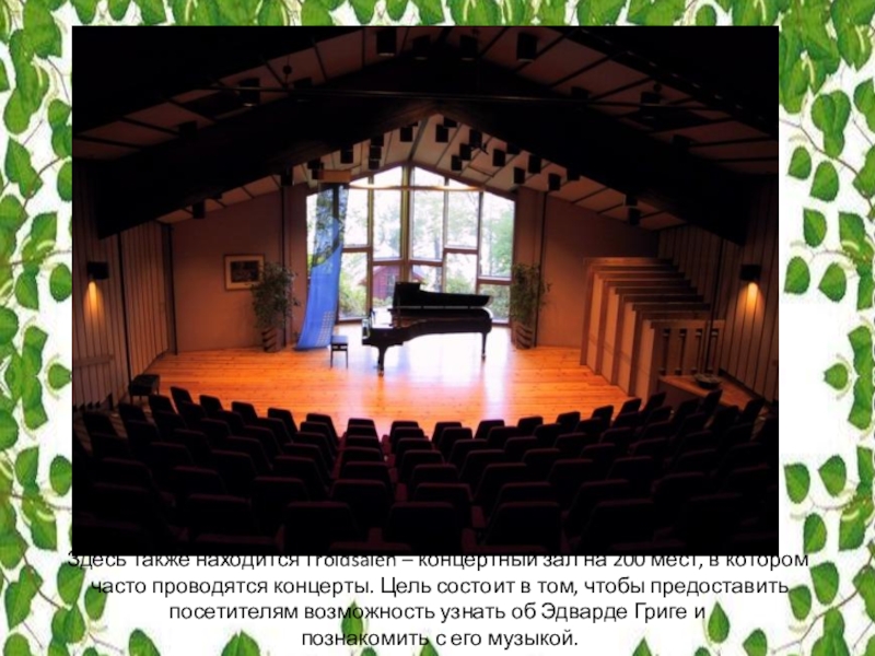 Слайд 28Здесь также находится Troldsalen – концертный зал на 200 мест, в
