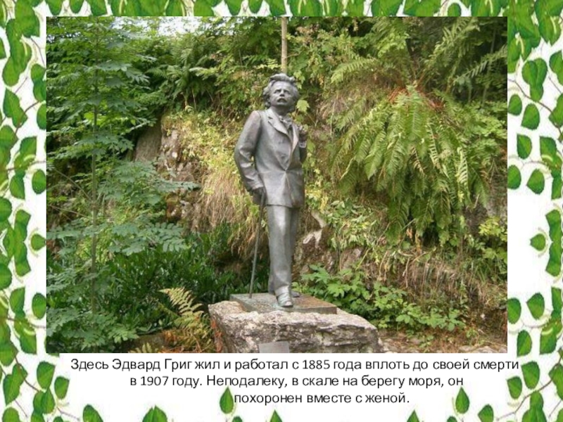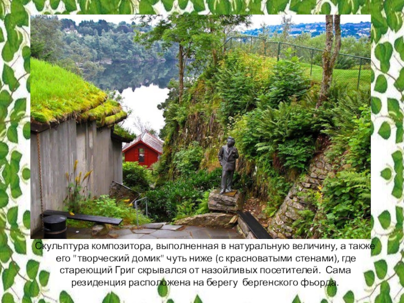 Слайд 33Здесь Эдвард Григ жил и работал с 1885 года вплоть до