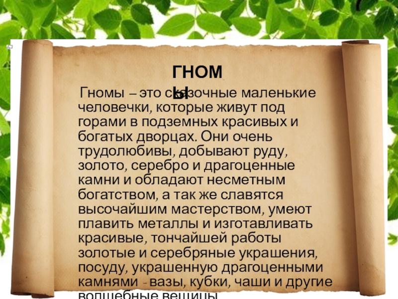 Слайд 40 Гномы – это сказочные маленькие человечки, которые живут