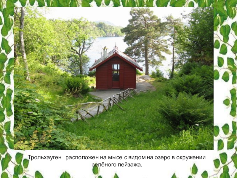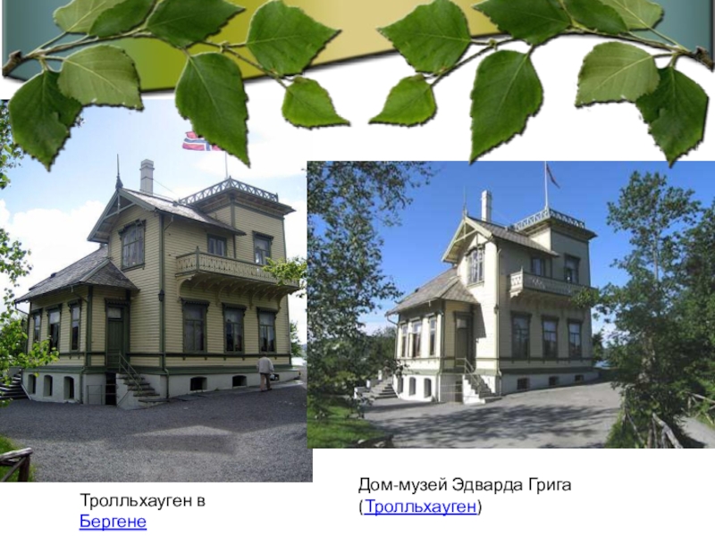 Слайд 25Трольхауген включает в себя музей Эдварда Грига, его виллу и домик,