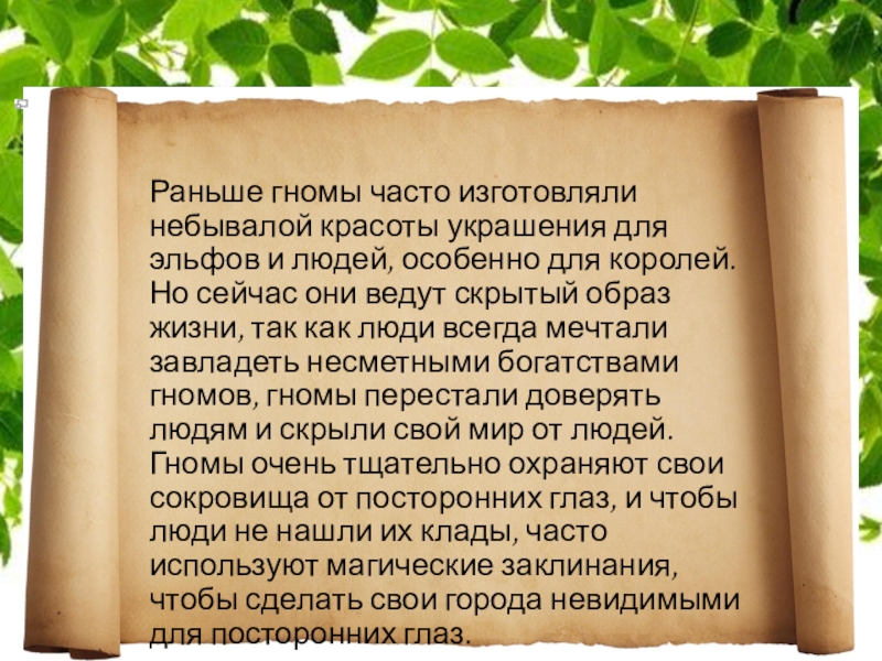 Слайд 41 Раньше гномы часто изготовляли небывалой красоты украшения для