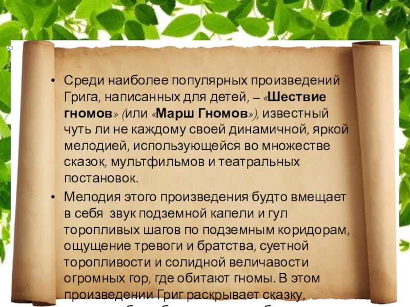 Среди наиболее популярных произведений Грига, написанных для детей, – «Шествие гномов»