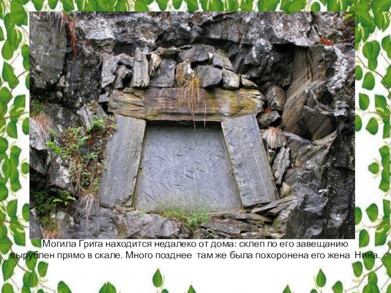Слайд 32Могила Грига находится недалеко от дома: склеп по его завещанию