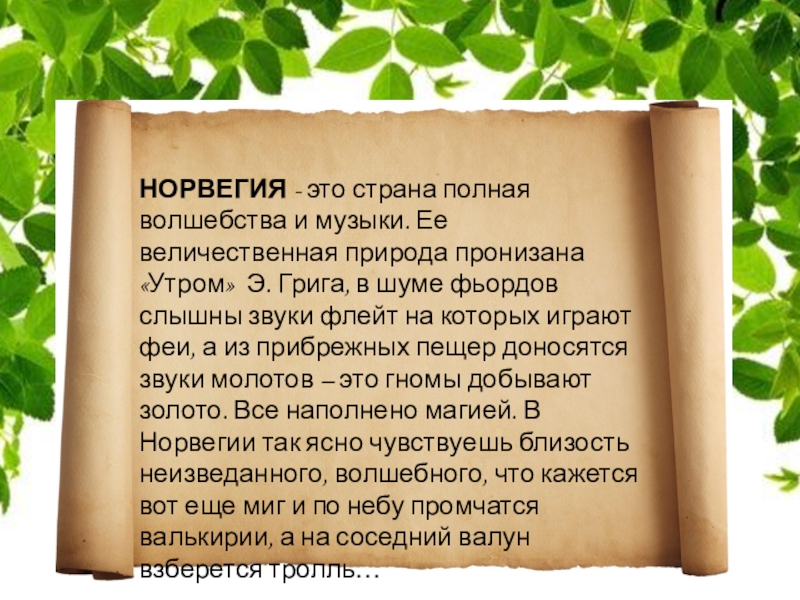 Слайд 3НОРВЕГИЯ - это страна полная волшебства и музыки. Ее величественная природа