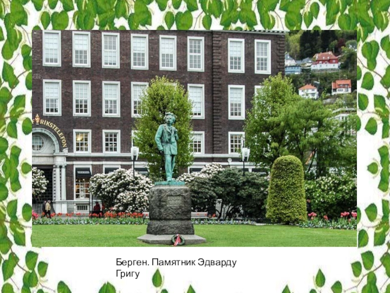 Слайд 22Эдвард Григ родился и провёл молодость в Бергене. Этот город по