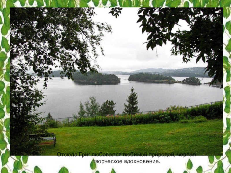 Слайд 26Отсюда Григ любовался любимой природой, черпая