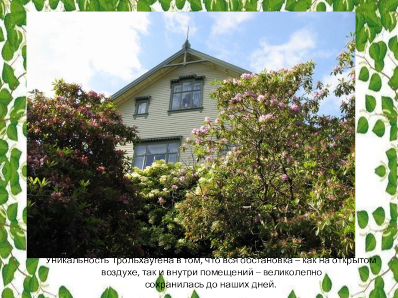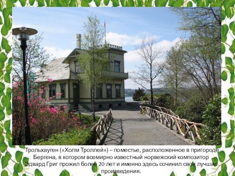 Слайд 21Трольхауген («Холм Троллей») – поместье, расположенное в пригороде Бергена, в котором