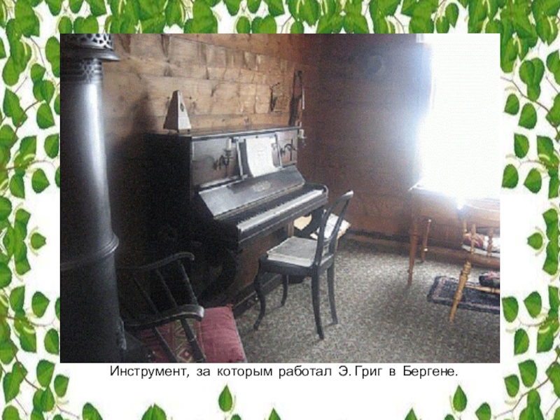 Слайд 27 Инструмент, за которым работал Э. Григ в Бергене.
