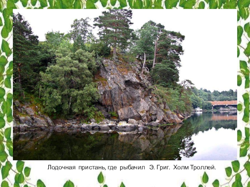 Слайд 31Лодочная пристань, где рыбачил Э. Григ. Холм Троллей.