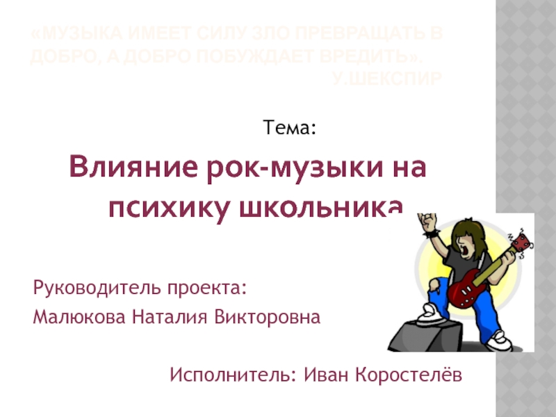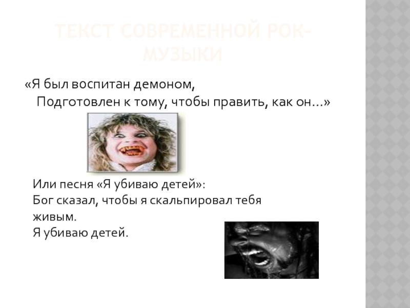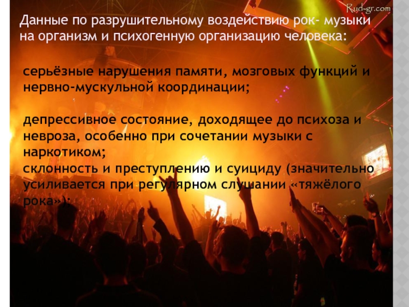 Данные по разрушительному воздействию рок- музыки на организм и психогенную организацию человека: