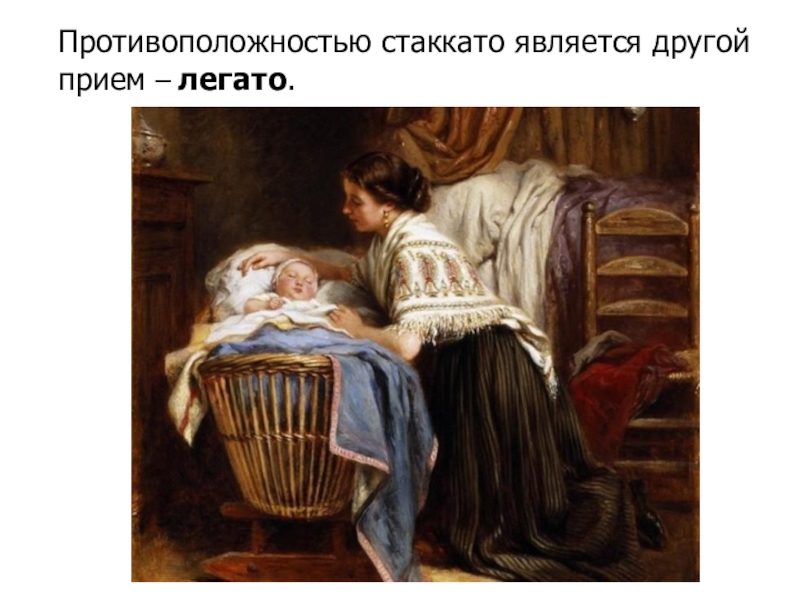Слайд 24Противоположностью стаккато является другой прием – легато.
