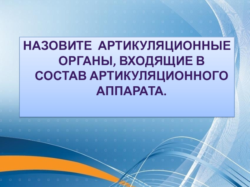 Слайд 5Назовите артикуляционные органы, входящие в состав артикуляционного аппарата.