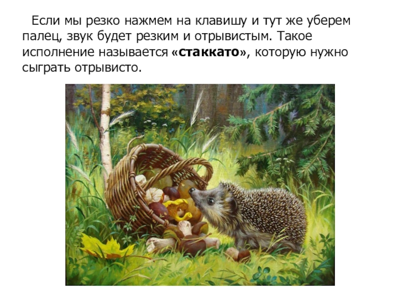 звук будет резким и отрывистым. Такое исполнение называется «стаккато», которую нужно сыграть отрывисто.
