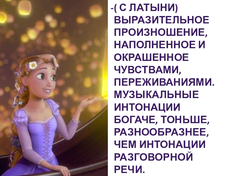 Слайд 19( с латыни) выразительное произношение, наполненное и окрашенное чувствами, переживаниями. Музыкальные