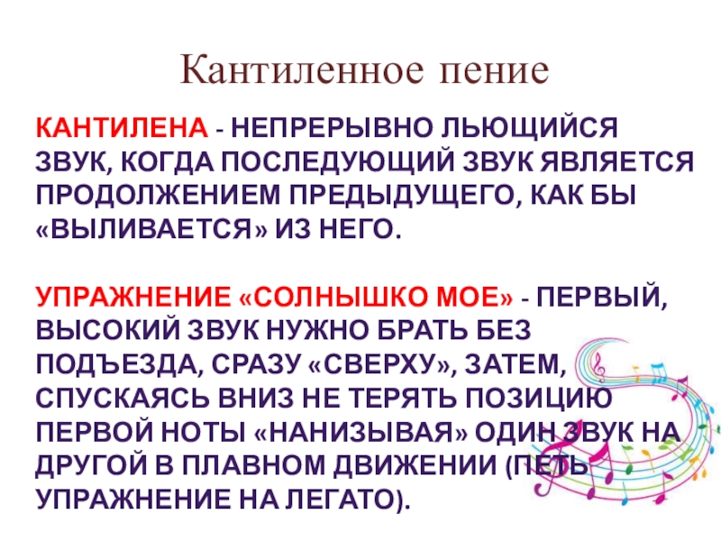 Слайд 29Кантиленное пение