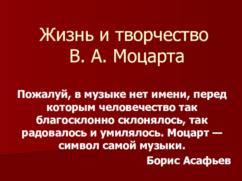 которым человечество так благосклонно склонялось, так радовалось и умилялось. Моцарт — символ самой музыки.
