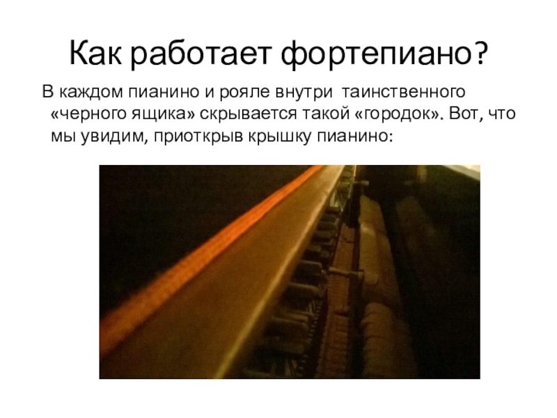 «черного ящика» скрывается такой «городок». Вот, что мы увидим, приоткрыв крышку пианино: