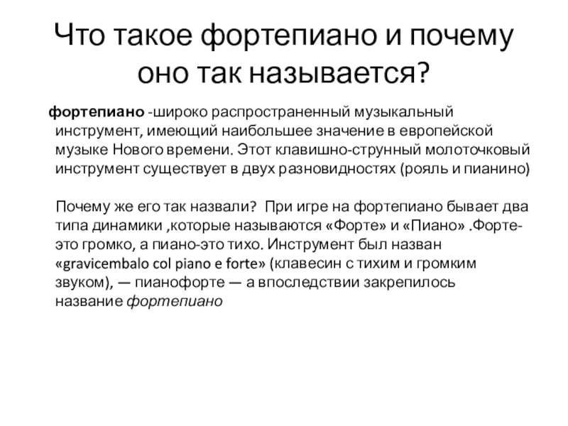 Слайд 3Что такое фортепиано и почему оно так называется?