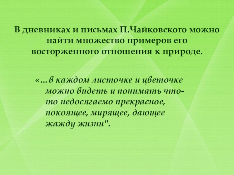 «…в каждом листочке и цветочке можно видеть и понимать что-то недосягаемо прекрасное, покоящее, мирящее, дающее жажду жизни".