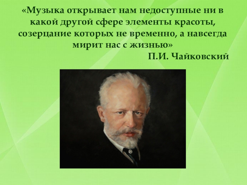Слайд 6«Музыка открывает нам недоступные ни в какой другой сфере элементы красоты,