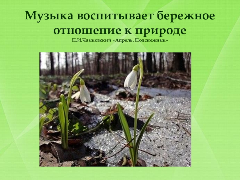 Слайд 12Музыка воспитывает бережное отношение к природе