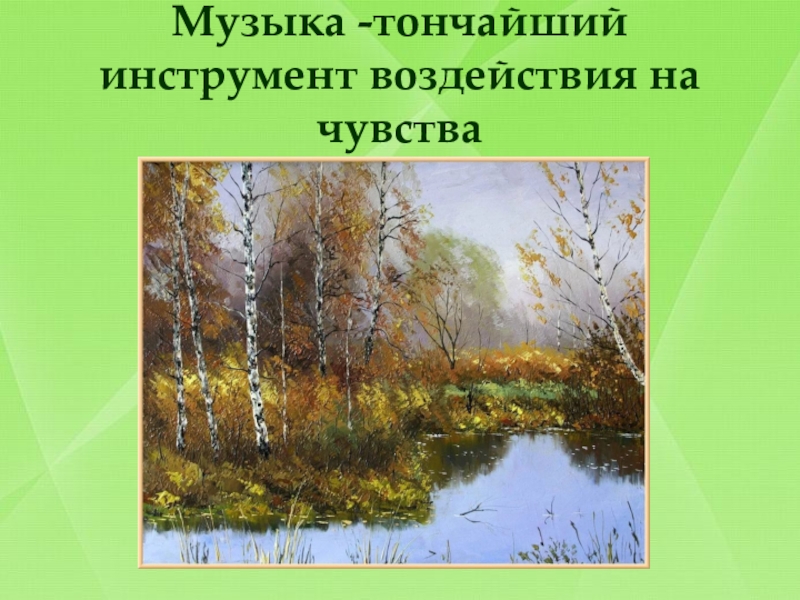Слайд 9Музыка -тончайший инструмент воздействия на чувства