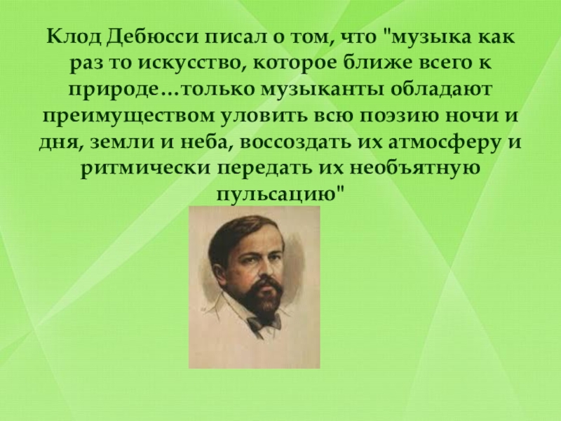 Слайд 13Клод Дебюсси писал о том, что "музыка как раз то искусство,