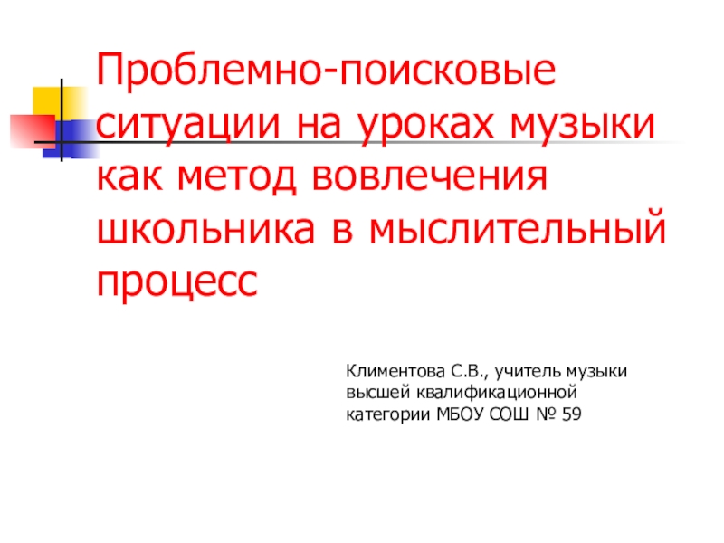 Климентова С.В., учитель музыки высшей квалификационной категории МБОУ СОШ № 59