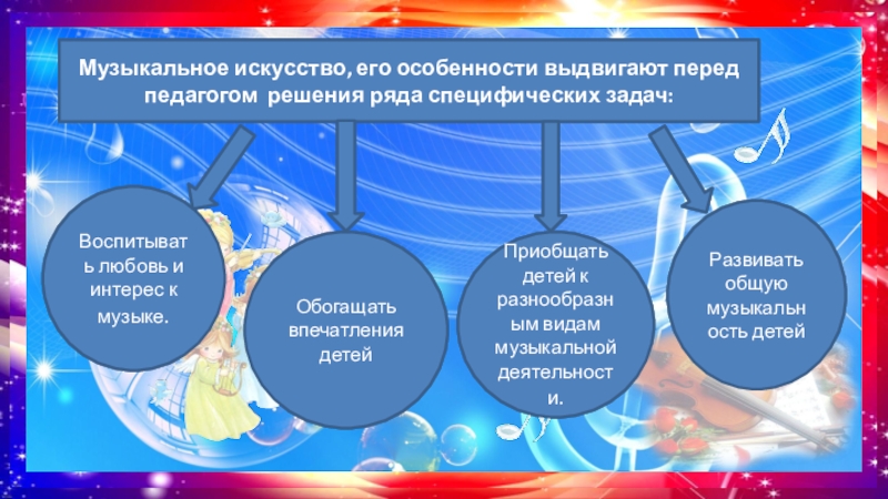 Приобщать детей к разнообразным видам музыкальной деятельности.