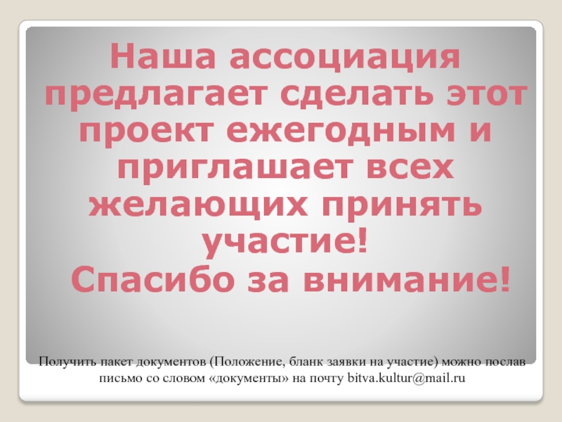 Наша ассоциация предлагает сделать этот проект ежегодным и приглашает всех желающих принять участие!